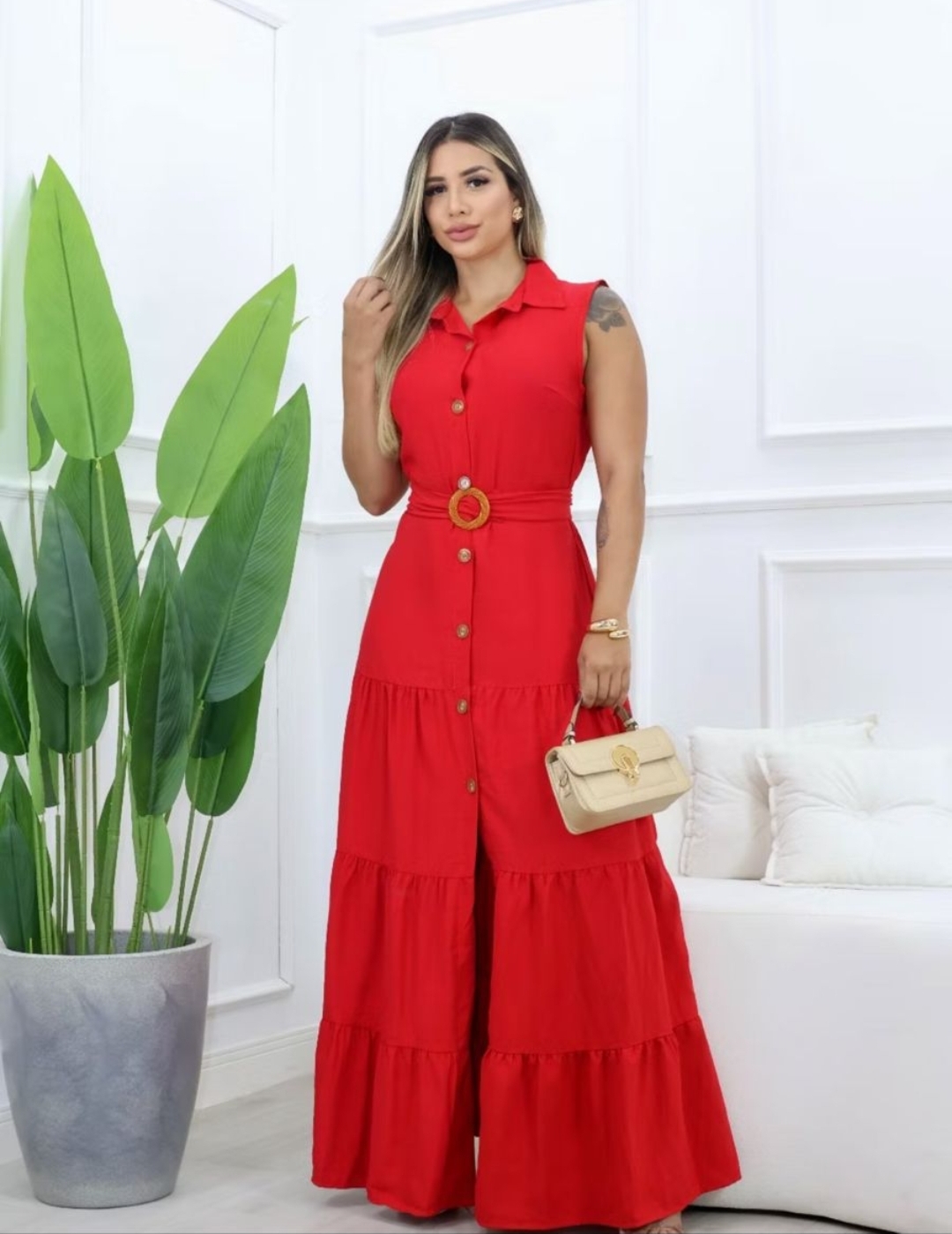 Vestido Longo com Bojo Viscolinho. Tamanho: M. Cor: Vermelho e Nude